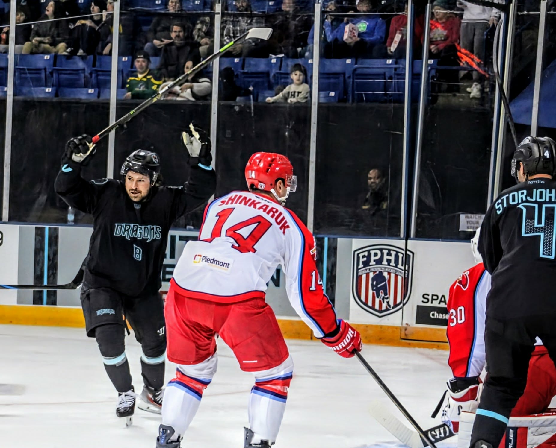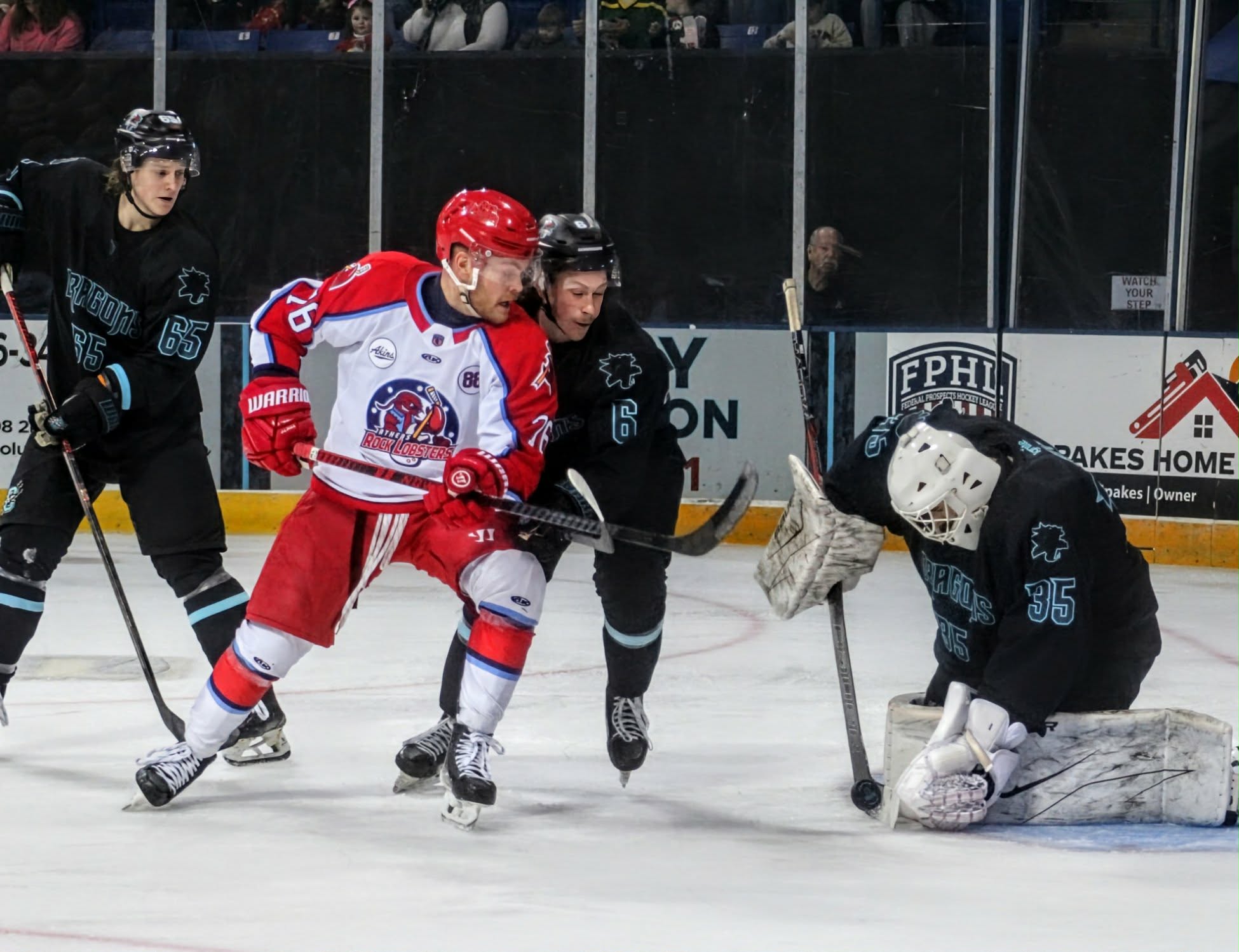 The evening ended with the River Dragons taking their first W in opposition to the Rock Lobsters this season, claiming victory in regulation, 8-4.